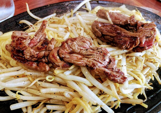 次はカルビ焼きそばのカルビを1枚ガブリ!