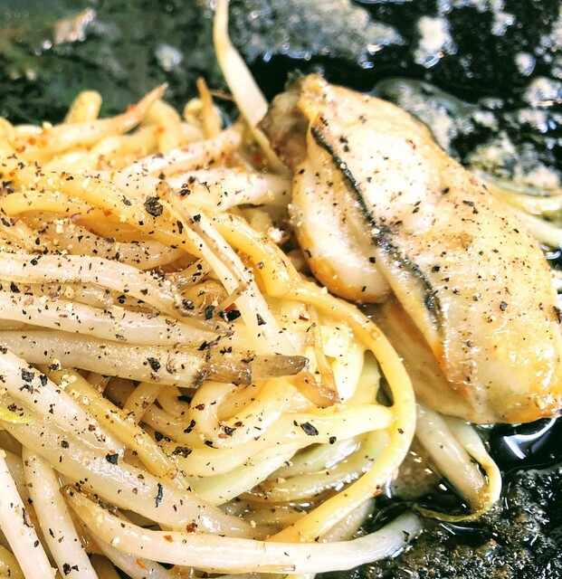 ナチュラルオイスターソースの効いた牡蠣焼きそばの出来上がりです。