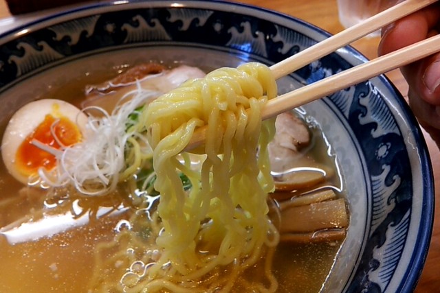 麺は、心地よい歯ごたえで、スープとの絡みも良く、一体感を感じる。