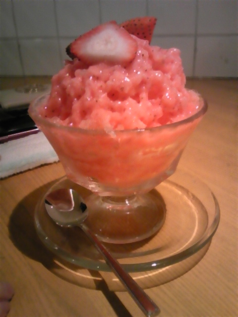 力強い甘みが、氷の中に隠れているバニラアイスに負けることなく口の中に広がり、夢中になって