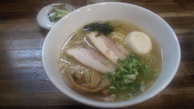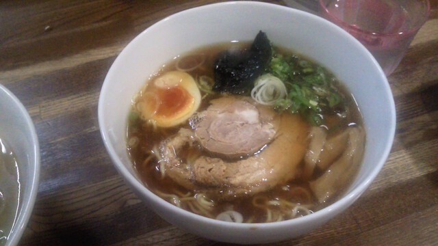 燻しおは、ほんの少し濁った感じだが、透き通ったスープで、チャーシュー2枚、味玉1個、めんまに、ねぎ!