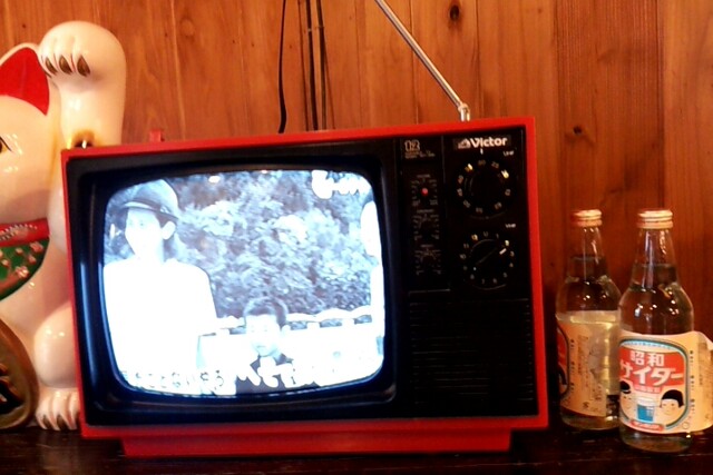 テレビは白黒テレビ(ちゃんと映ってました)、店内には屋台のリアカーを思わせる席が2席分用意
