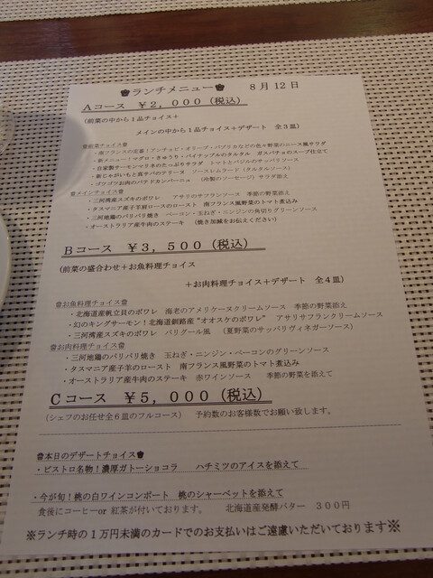 メニューはAコース(2000円)、Bコース(3500円)、Cコース(5000円)があり、どれがお勧めですか?