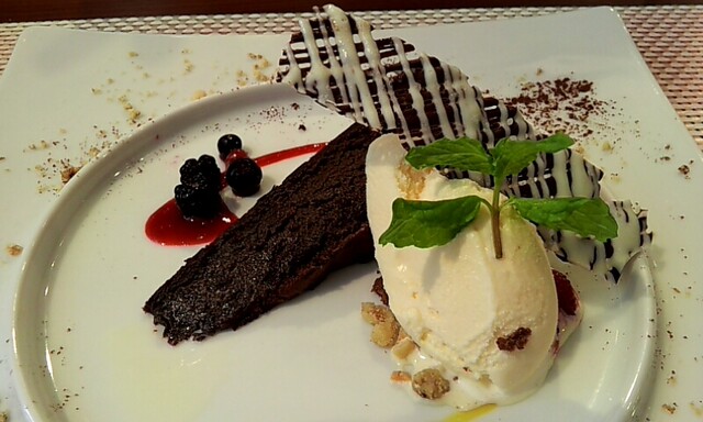 ■デザート:ビストロ名物!濃厚ガトーショコラ ハチミツのアイスを添えて