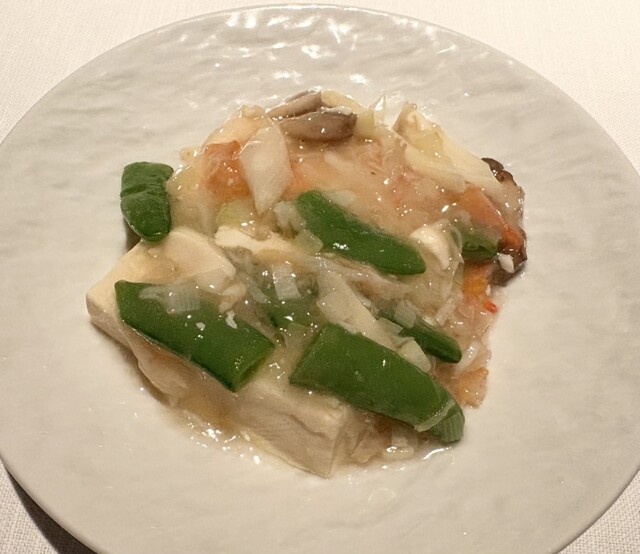注文は、そら豆の炒めや麻婆茄子、豆腐の餡掛け、小籠包、春巻き、季節の炒飯、そして紹興酒!