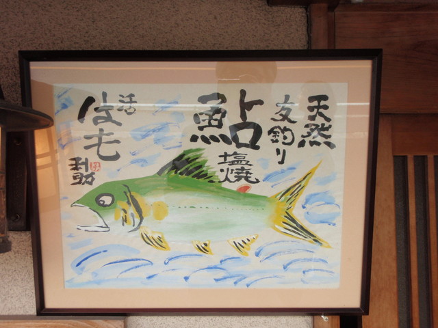 今回の絵は、ご主人自ら関西各地の河川に出かけられて釣られた正真正銘の「天然美鮎」が描かれていました。