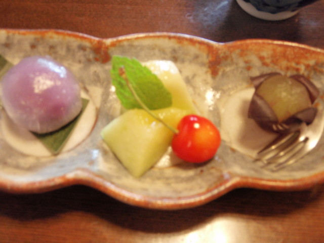 ⑨デザート : 水菓子、メロンとさくらんぼ、ブドウ