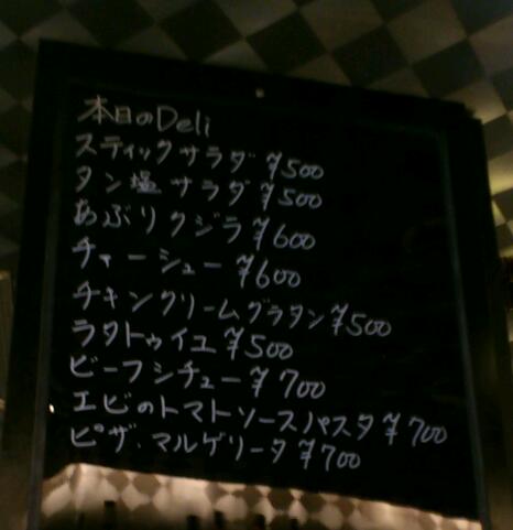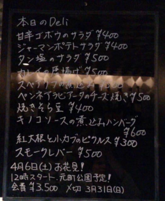 2013.3.28のメニューボードです、ワインにピッタリのデリが揃ってます