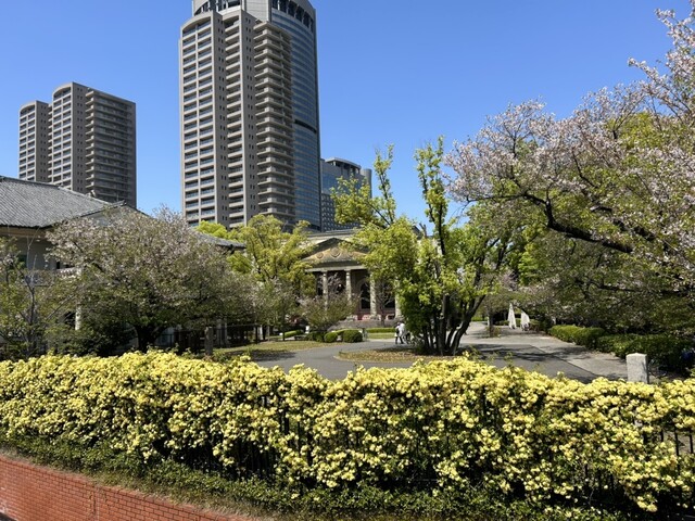 造幣局北側出口向かいの公園、モッコウバラが美しく満開でした