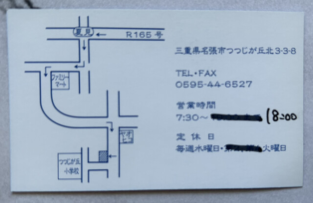 名刺より、地図、定休日は毎週火&水です