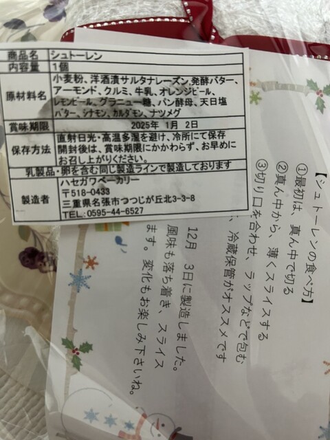 シュトーレンの賞味期限は来年1月4日まで