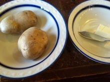注文してちょっとしてからどういうわけか茹でたじゃがいも2個とマーガリンが出てきました。