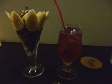 本当は、グリーンカカレーを食べるはずがこの日はパーティーがあるため出来ないとの事から仕方なく、チョコレートパフェ(600円)と今まで聞いたことのないジュースが2つある中から酸味のあるクランベリージュース(500円)を頼みました。