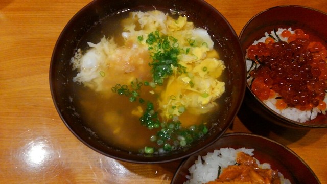 ご飯:私はうに丼、娘はいくら丼、妻は梅にゅうめん