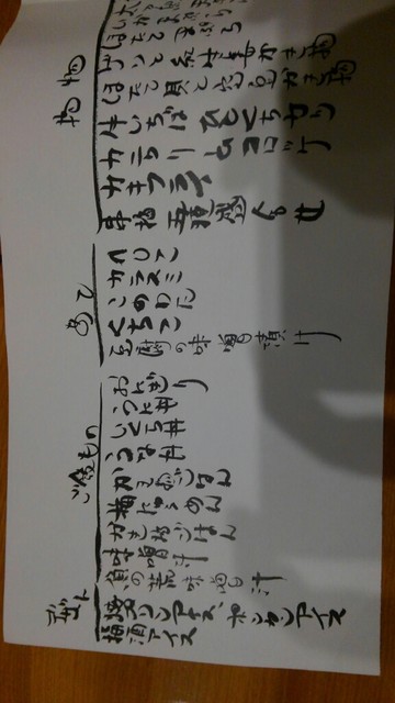 1週間前に妻が電話で予約、その際に「刺身盛り合わせ」だけ注文、あとは当日にお願いすることにしました。