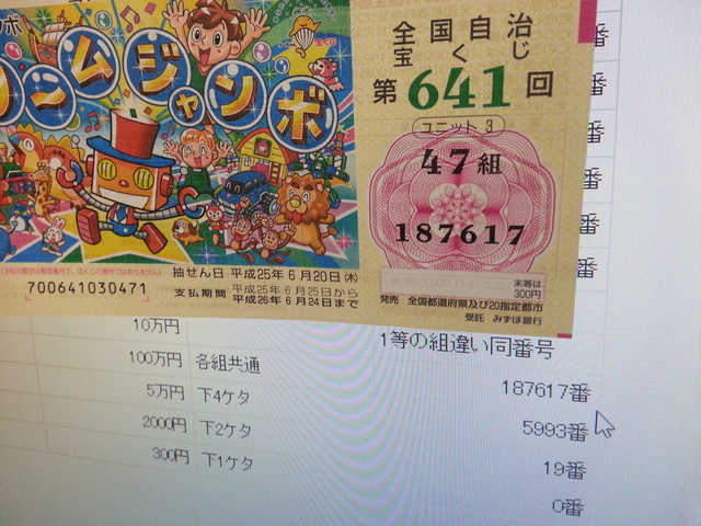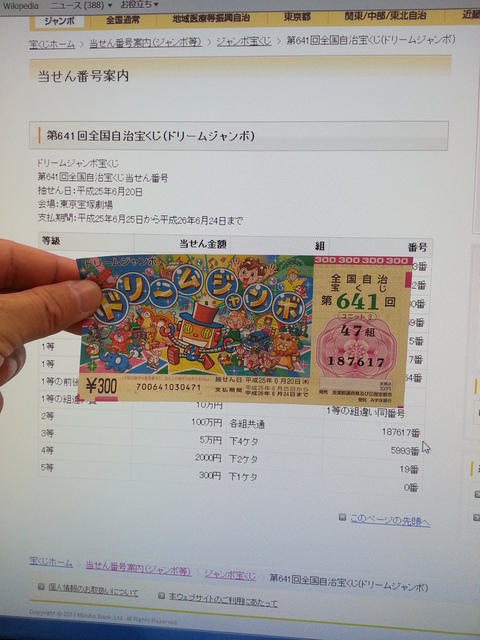 まさか・・・凄い・・・おごってくれ~! 第641回ドリームジャンボ宝くじ (2013/06/22)