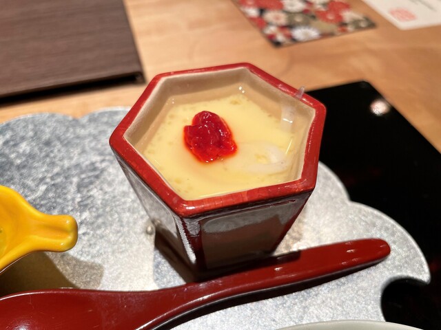 鱧の茶碗蒸し、百合根、新銀杏、巻湯葉