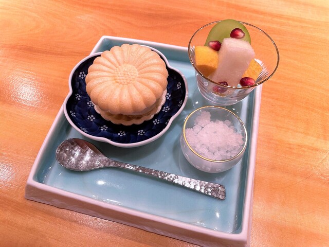 甘味(ジンジャーエールジュレ レモンパンナコッタ・洋梨コンポート 無花果・シャインマスカット)