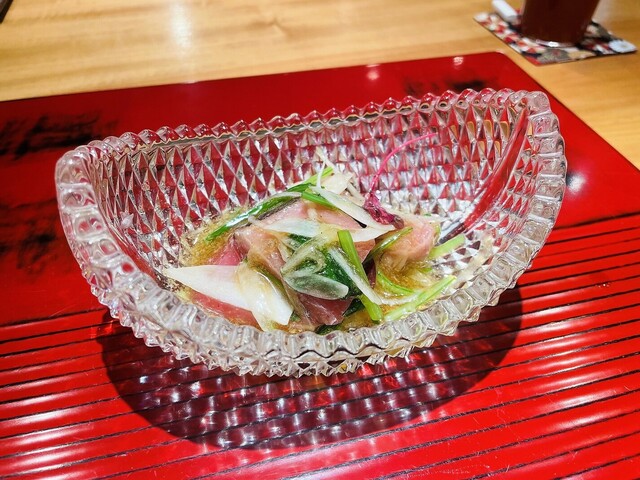造り いさきの焼き霜造り 辛み大根シャーベットをかけて