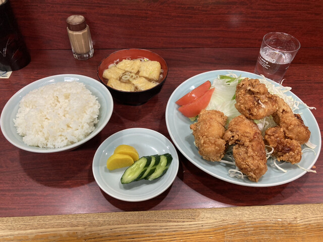 右手不調は今週いっぱい様子見だそうなので、今日は揚げ物に!チキンカツ定食にしました。