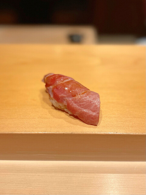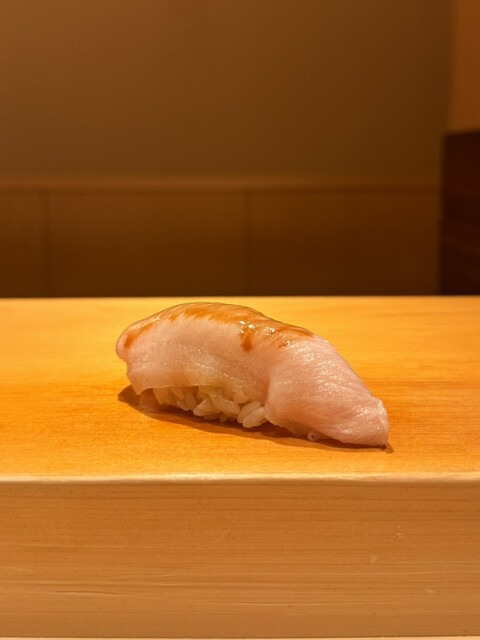 橋本さんの握りはネタが大きく、シャリを包み込むような形状で、まずネタの旨さが来てからのシャリ余韻。