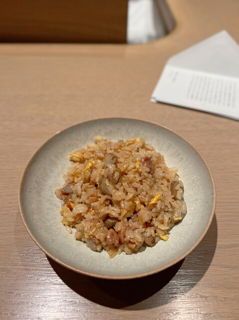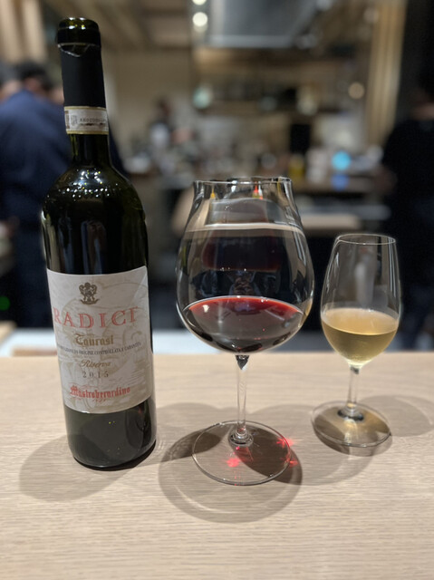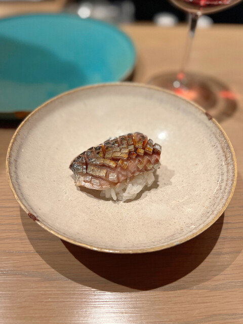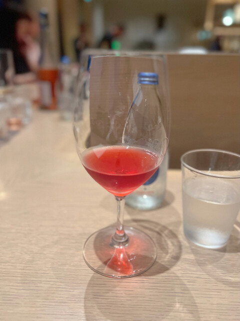 たまたま赤ワインが同時に出てきたのですが(意図してペアリングしたわけではなく、次の穴子からの予定だった)、コレが意外と合う。