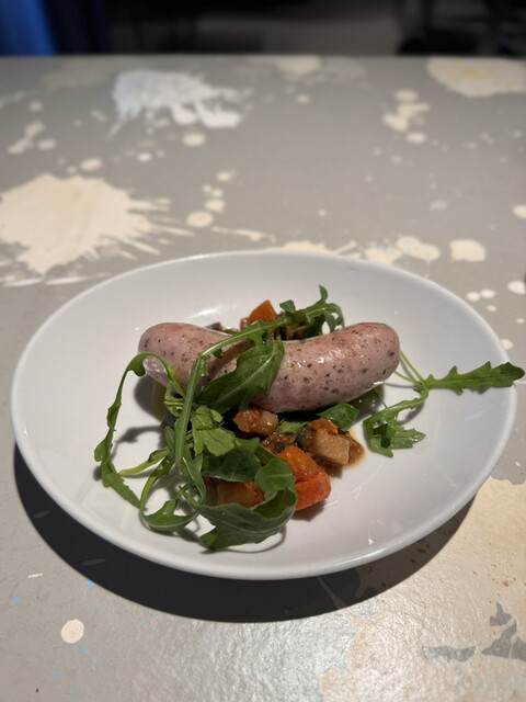 サルシッチャは3種類、岡山産いのししプレーン、岡山産ピーチ豚グリーンペッパー、岡山産ピーチ豚オレガノとあり、いのししプレーンをお願いしました!
