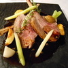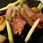 仔羊のロースト,仔羊はフレッシュですね~。付け合わせはかぶ・アスパラ・じゃがいも・かぼちゃのピューレ,ソースはフォンドヴォーとマルサラです。フレッシュなローズマリーも添えています。素材良い仔羊,徳島のイタリアンでフレッシュの仔羊が食べられることも,シェフも頑張っているんだなと思います。