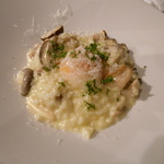 阿波尾鶏ときのこのカルボナーラリゾット,米の炊き上げ方も申し分ありません。