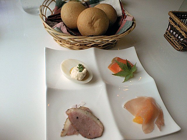 次に、前菜のプレートとパンが。