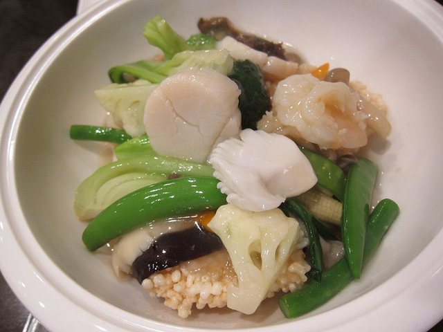 海鮮のあんには、イカ、エビ、北寄貝、貝柱、アワビと豪華な具材が。