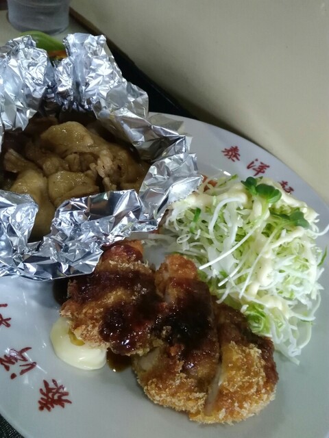 そしてA定食は生姜焼きとチキンカツの合わせ技。豚と鶏を同時に食べたい時に重宝します。