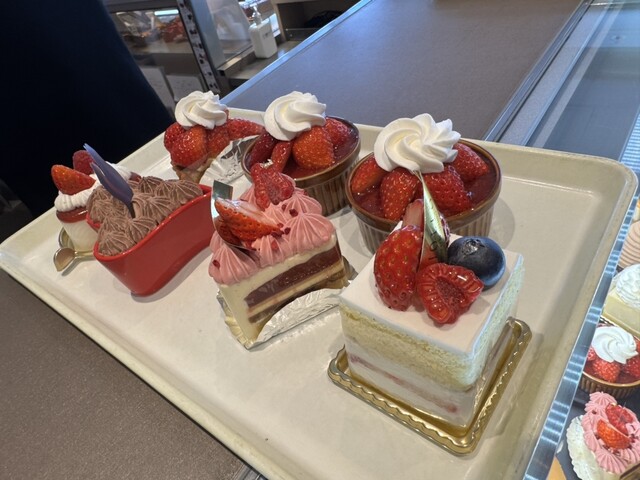 ブリュレ・フレーズ(×2)/タルト・フレーズ/ショートケーキ・フレーズ/ガイア・フレーズ(カット)/いちご温泉/レアチーズ・フレーズ