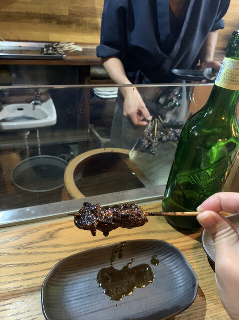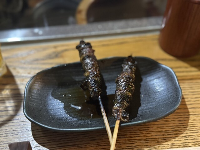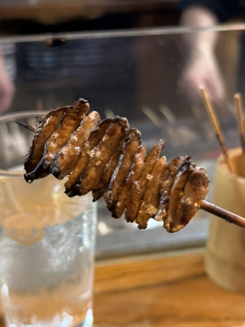 串焼きは、1番美味しくない蒸したえり焼きからスタート。これも美味い十分。結局、どれも美味しい。