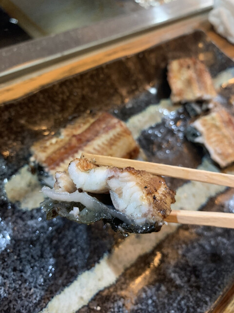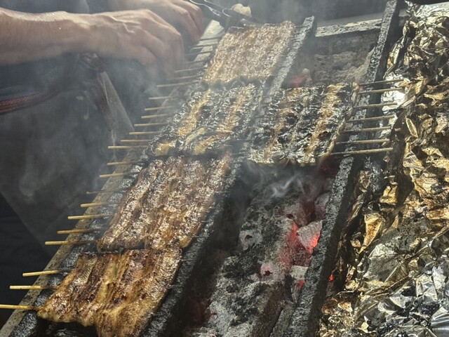 うなぎは、身が締まっているものと、焼いているそばから脂のってることがわかるふっくらうなぎ。