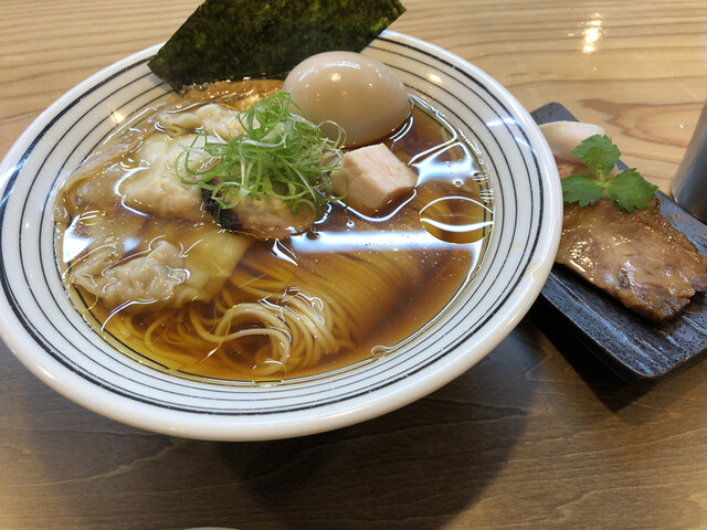 〇 淡麗煮干し中華そば ~ 綺麗なスープです~☆ 淡麗でクリアーな煮干しをまとったスープで美味しい~☆ 追加の雲吞は旨い~やっぱ千鶏の雲吞は旨い~☆ ストレートな麵は煮干しをまとったスープを程よくもちあげてくれます~☆ そんで岩海苔もいい仕事してくれます~☆
