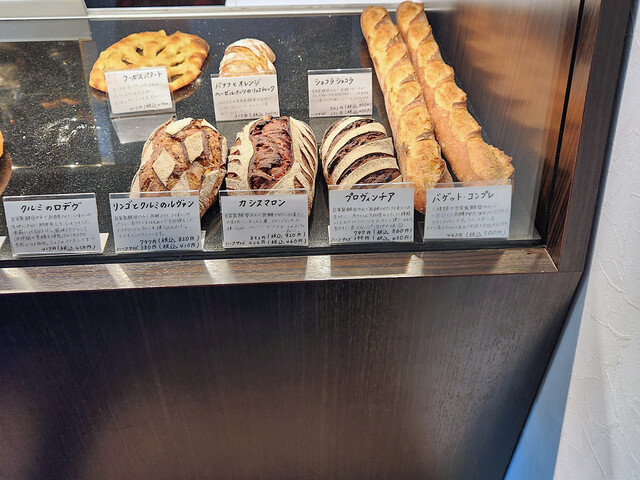 どれにしようかな~って感じで クロワッサン・オ・ルヴァン( 290円 ) 合鴨スモークとクリームチーズ( 330円 ) カシスマロンハーフ( 460円 ) リンゴとクルミのルヴァンハーフ( 410円 )を購入です~☆