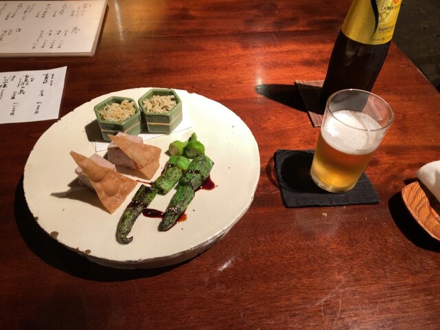 まずはビールとおつまみ3種盛りを注文