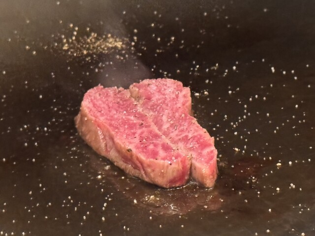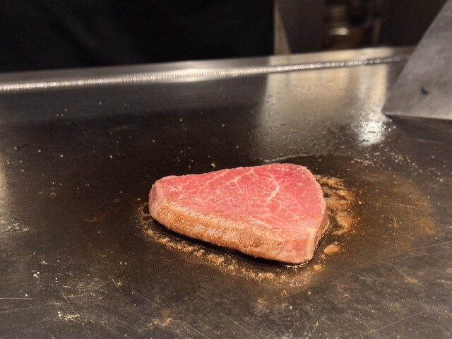 リソレにて強火で側面に火入れし旨みを閉じ込めてからステーキ(焼く)していく鉄板焼にしては珍しい技法