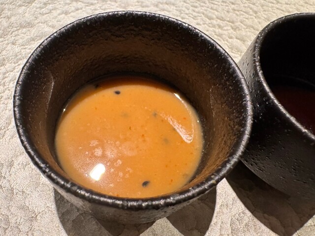 隠し味にお味噌などを加えオマール海老でソースを作ります
