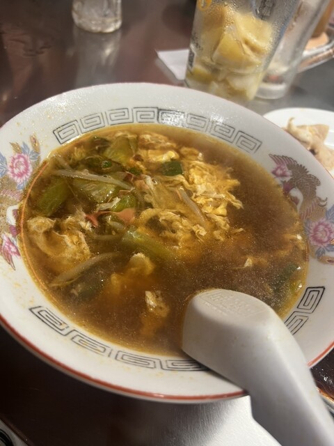 見た目通りのしっかり味のスープに肉と野菜がいっぱい!卵で濃さをマイルドにしてくれています♪