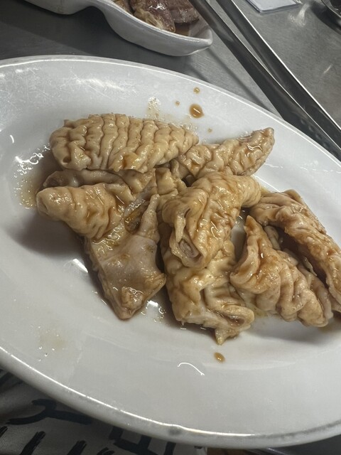 まずは生ビールと豚ホルモン2人前、そして肉スープを注文しました♪