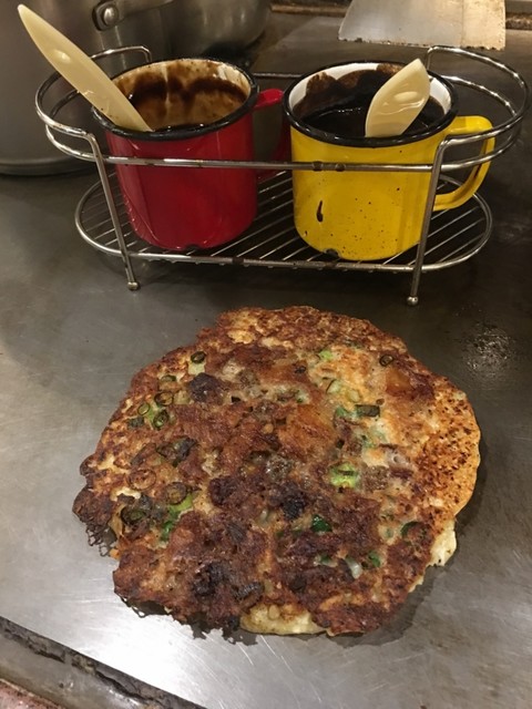 カリカリに焼かれた薄い生地にネギと牛すじ煮込みの甘み。ちょうど良い甘みと辛味が感じられます。ビールによく合う感じ。