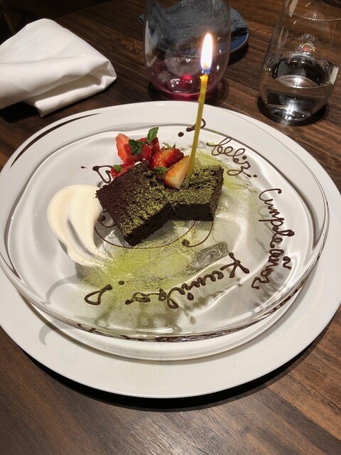 連れの誕生日だったので、特別のバースデープレートを事前にお願いしていました。素晴らしい演出です。