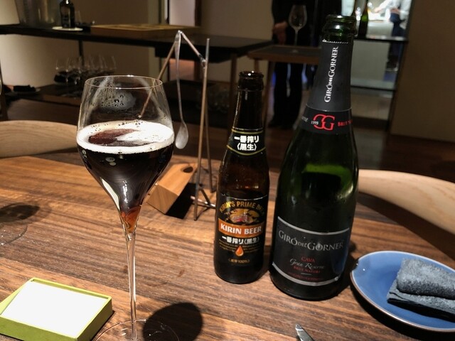 合わせるのは黒ビール(キリン一番絞りの黒生)とコースの最初に出てきたシャンパンのちょっと意外な組み合わせのカクテルです。