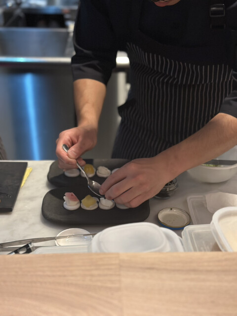 海老の焼き加減が素晴らしく、マスカルポーネとサクサクとした食感が良いアクセントでした。