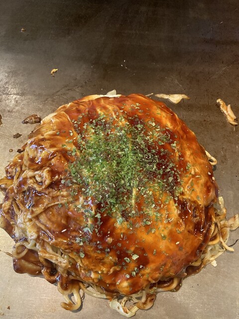 ちなみに作る最初の生地の段階で少し焦がしてたので心配だったのだが、その部分はヘラで外し水滴での鉄板温度の管理も健在。
