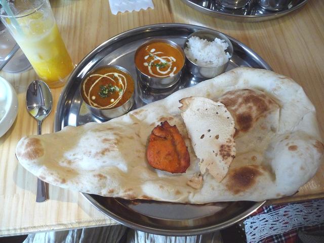 ナンは、大きい。 ごはんは、麦ご飯?