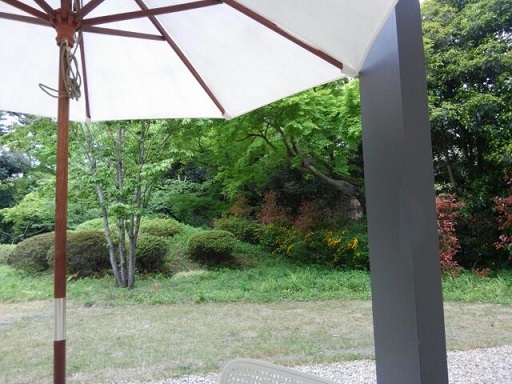 冷房のきいた店内(サンルーム)と、 庭のテラス席のどちらにしようか 迷ったけど、