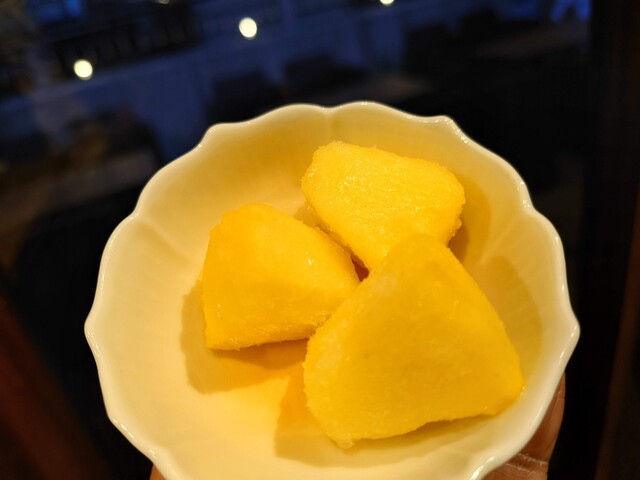 店頭のフルーツをカットしていた...